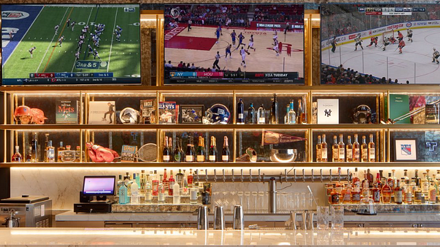 Il bar ha un ricco menù di cocktail, mocktail e una vasta selezioni di vini e birre. Per la parte cibo, vengono servite focacce, panini e piatti da condividere. Dato che si tratta di uno sports bar, ci sono decine di schemi televisivi, di cui uno da 200 pollici, il più grande della Grande Mela.