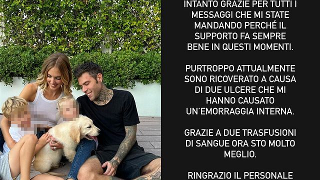 "Intanto grazie per tutti i messaggi che mi state mandando perché il supporto fa sempre bene in questi momenti. Purtroppo attualmente sono ricoverato a causa di due ulcere che mi hanno causato un'emorragia interna", così Fedez scrive dopo qualche ora sul suo profilo instagram. "Grazie a due trasfusioni di sangue ora sto molto meglio. Ringrazio il personale medico che mi ha letteralmente salvato la vita", ha poi concluso.