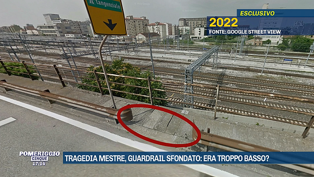 Un'immagine presa da Google Maps dimostra che già dal 2022 c'era un "buco" nel guard rail sul cavalcavia di Mestre (Venezia), dove è precipitato un bus con un gruppo di stranieri a bordo. La foto, mostrata in esclusiva a "Pomeriggio Cinque", mostra il tratto del "cavalcavia della Vempa" con il guard rail che si interrompe per un tratto, prima di riprendere dopo poco meno di un metro.