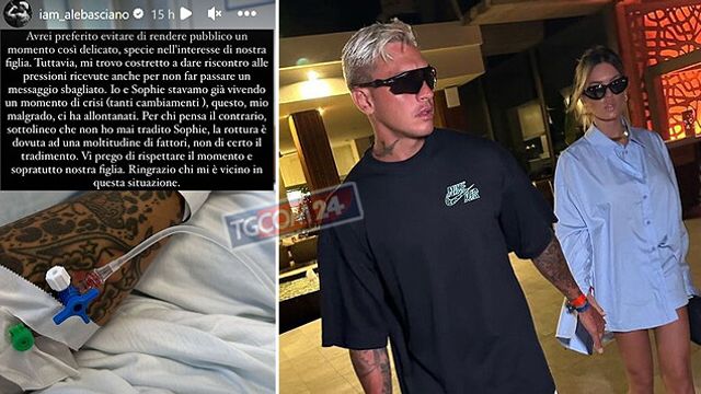 Alessandro Basciano e Sophie Codegoni si sono lasciati, ma la loro rottura sta diventando un giallo che intriga i follower. Dopo che lei ha scritto una Storia in cui ufficializzava l’addio dal compagno, padre di sua figlia Celine Blue, lui ha postato dal letto di ospedale scrivendo: “Non voglio che passi un messaggio sbagliato. Io e Sophie eravamo già in crisi, non l’ho mai tradita. Ora prego per la mia famiglia, per il mio riposo”.