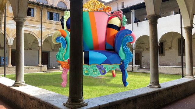 Nella sala del capitolo di Sant'Agostino, la versione geometrica della poltrona Proust di Mendini, icona di questa edizione, accoglierà i visitatori nell’info-point della manifestazione.