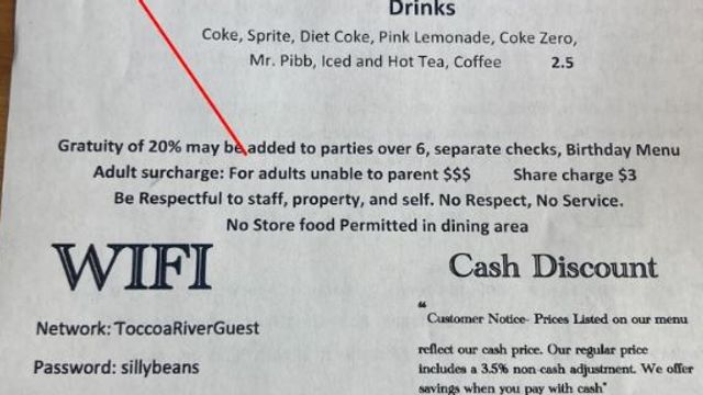 La sorpresa è arrivata dopo il dolce, con il conto. "Supplemento per adulti - si legge -. Per gli adulti che non possono essere genitori. Sii rispettoso verso il personale, la proprietà e te stesso. Nessun rispetto, nessun servizio".