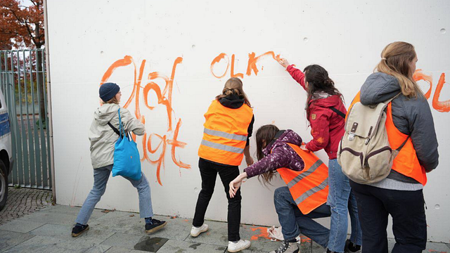 Un gruppo di attivisti per il clima del movimento "Last Generation" ha imbrattato una delle facciate esterne della Cancelleria di Berlino con vernice arancione durante una manifestazione. Come riporta Ntv, i membri del gruppo hanno anche scritto slogan come "Olaf sta mentendo" sui muri e sul marciapiede antistante la Cancelleria, in riferimento al cancelliere tedesco Olaf Scholz e alle politiche del suo governo per la lotta al cambiamento climatico, ritenute inadeguate. La polizia e le forze di sicurezza sono intervenute e ci sono stati dei tafferugli. Alcuni manifestanti sono stati trattenuti per essere identificati.