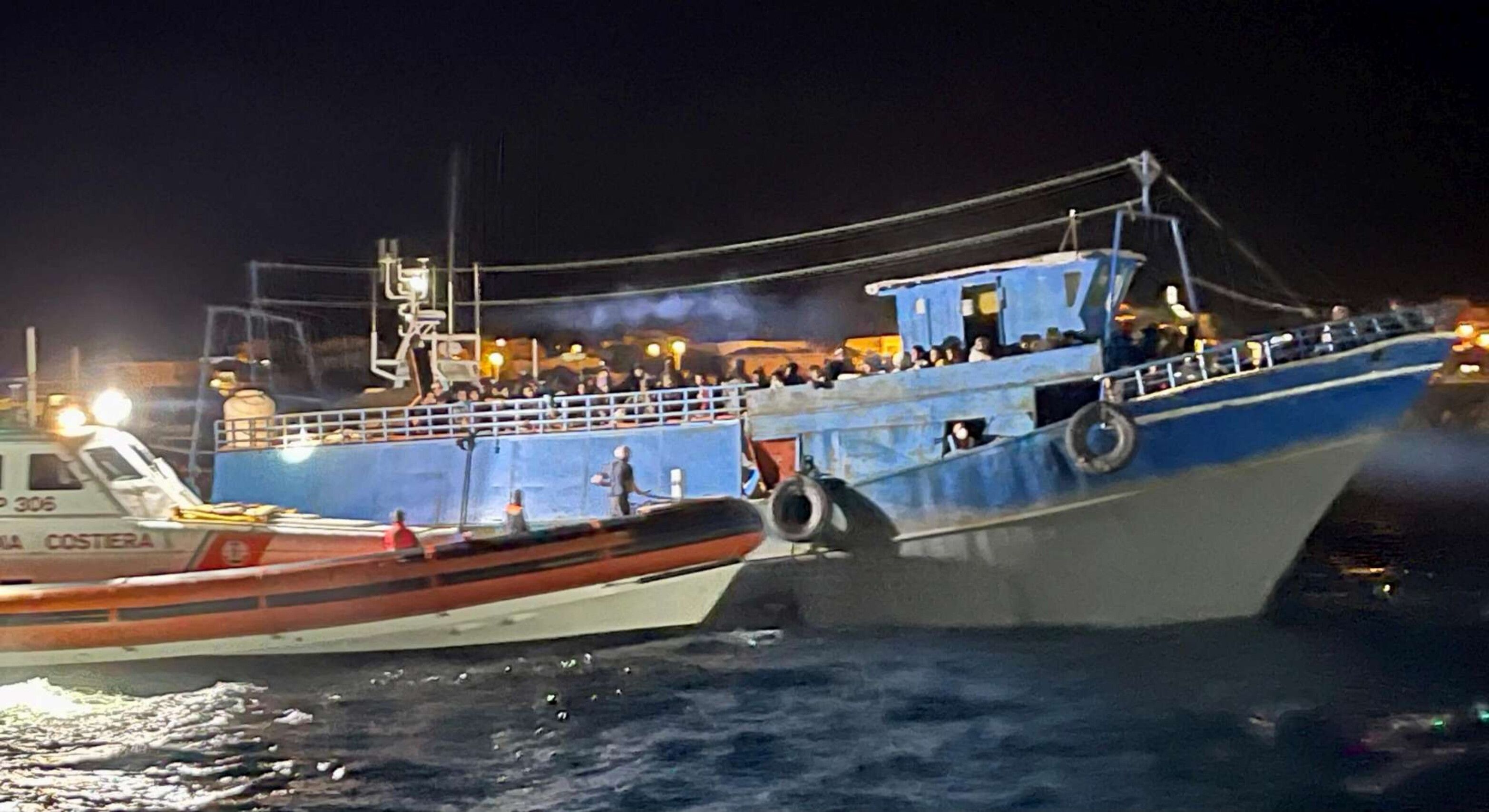 Lampedusa diventa teatro di un altro maxi sbarco di migranti. Un peschereccio, con a bordo oltre 500 persone, è giunto nel porto dell'isola e ha attraccato al molo commerciale. A scortarlo fino alla banchina, per evitare rischi perché soffiava forte il vento, è stata una motovedetta della Guardia costiera.