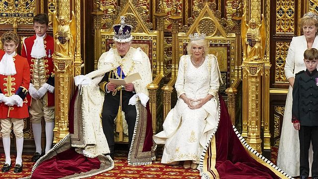 Qualcosa che re Carlo l'anno scorso aveva già fatto, in effetti, ma a nome di sua madre - 96enne e in precarie condizioni di salute - pochi mesi prima di succederle, l'8 settembre 2022, alla morte di lei. E che ora ha ripetuto da protagonista in un contesto sostanzialmente diverso: perché se allora si era limitato a sedersi accanto a un trono vuoto, e a parlare in terza persona, stavolta il trono - sistemato secondo costume nella Camera dei Lord, in quanto i sovrani britannici non possono oltrepassare il portone sbarrato simbolicamente in faccia ai loro araldi di quella elettiva dei Comuni, da dove tutti i deputati si 'degnano' invece di spostarsi per raggiungerlo - è spettato a lui soltanto. Con la regina Camilla al fianco, entrambi illuminati dal baluginio delle corone sul capo.