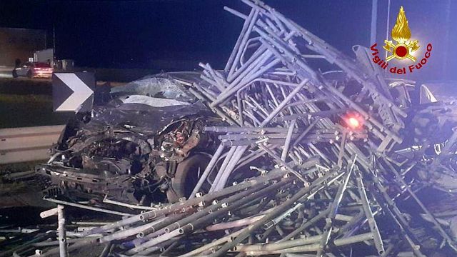 Uno dei tubi metallici per ponteggi che il mezzo trasportava è finito sull'auto delle vittime, che stava percorrendo la corsia opposta di marcia sulla SP111, la strada che attraversa tutta la val d'Enza. Il tratto è stata temporaneamente chiuso al traffico.