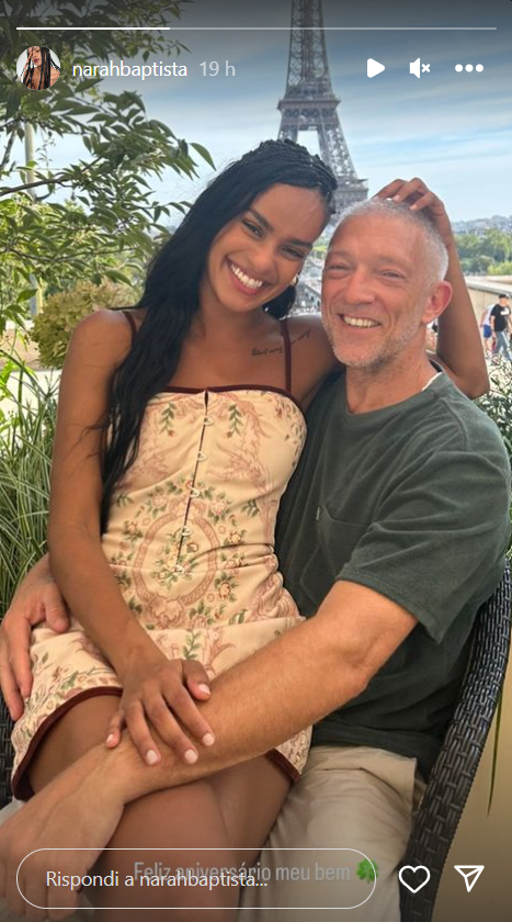 I rumor sulla loro relazione circolavano da tempo, a seguito di alcune storie social postate da Vincent Cassel e da Narah Baptista durante un evento a Rio De Janeiro. I video di loro che si scatenavano insieme sono rimbalzati sui social, seguiti dalle immagini della coppia a Roma "rubate" dai paparazzi del settimanale Chi. Ora sono l'attore e la modella a uscire finalmente allo scoperto senza lasciare spazio a dubbi. Lei posta uno scatto in cui è seduta sulle ginocchia del compagno e scrive: "Buon compleanno amore mio". Più chiaro di così...
