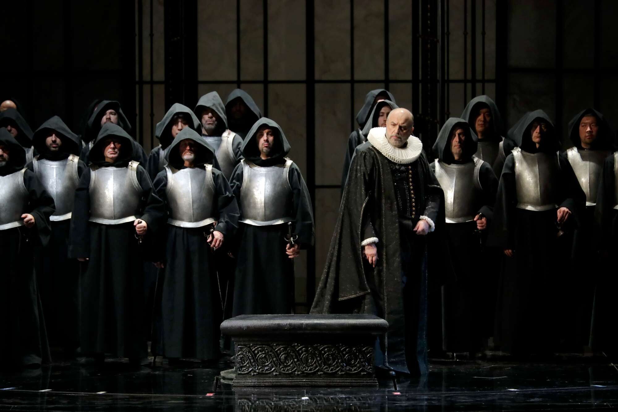 Il "Don Carlo torna al Teatro alla Scala in una grande produzione che rispecchia la doppia natura di dramma storico e manifesto romantico dell’originale schilleriano. Un impianto scenico unico si trasforma senza interrompere lo svolgimento dell’azione nei diversi spazi previsti dal libretto grazie alla spettacolare alternanza di colossali elementi scenografici. Per rendere l’atmosfera sospesa tra ambiente ecclesiastico e secolare il regista Lluís Pasqual e lo scenografo Daniel Bianco hanno fatto riferimento all’uso dell’alabastro nelle finestre degli edifici religiosi ma anche civili e in particolare alla grande finestra della Collegiata di Santa María La Mayor nella città spagnola di Toro. Una grande torre di alabastro è inquadrata in un sistema di cancellate che anch’esse ricorrono nell’architettura religiosa quanto in quella civile. La scena permette di ritagliare nei grandi spazi del palcoscenico i numerosi momenti di intimità e di isolamento che punteggiano la tragedia.