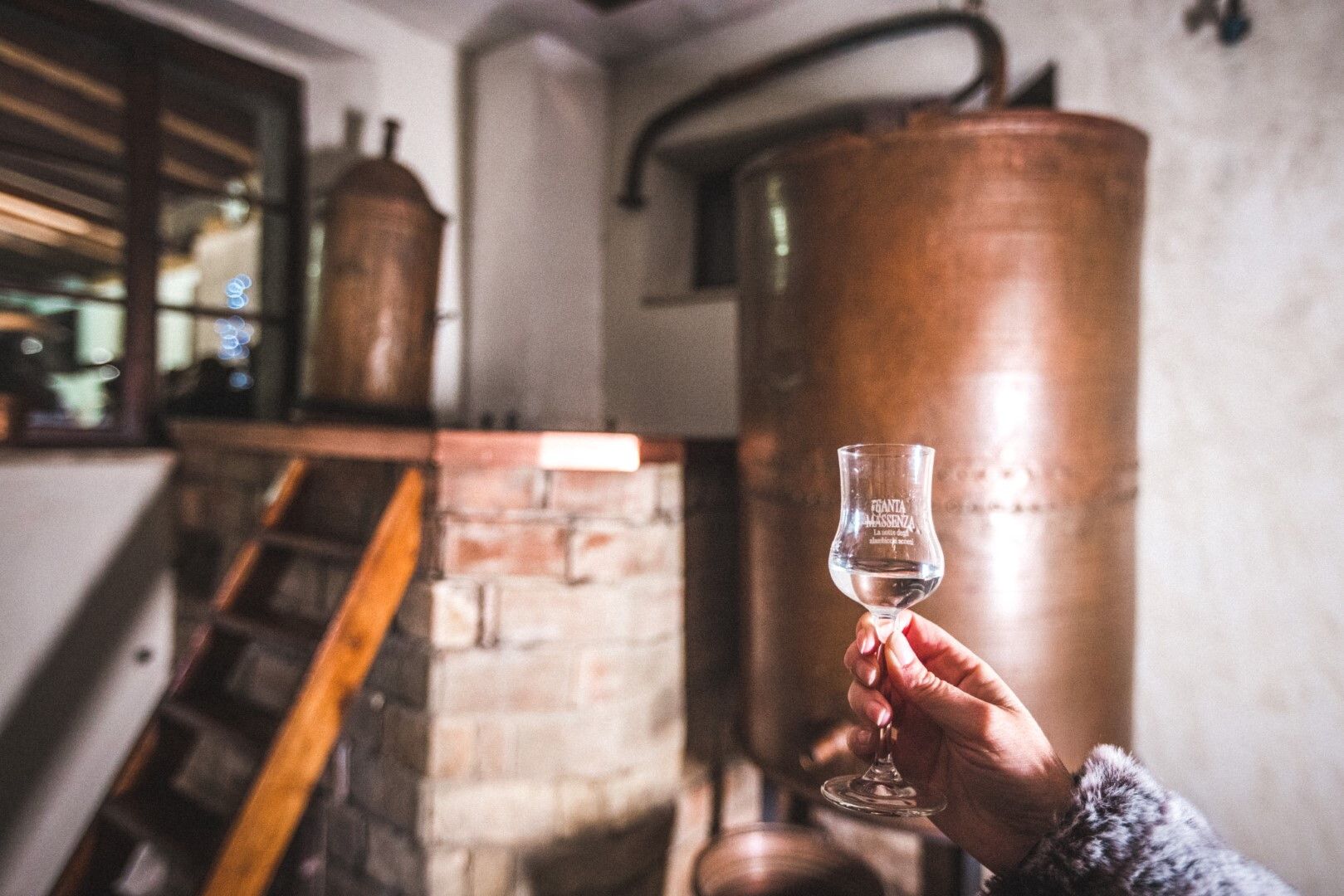 Tra profili dolomitici in lontananza, distese di frutteti e vigneti, laghetti e castelli, Santa Massenza può considerarsi la “capitale” della grappa artigianale, la cui tradizione risale al 1800. Un sapere antico che oggi viene abbinato all’innovazione tecnologica per regalare agli ospiti esperienze di gusto speciali. Questo concetto spicca nel settore dei distillati, qui ricavati dalle vinacce rimanenti dalla vinificazione, seguendo un’economia circolare.
