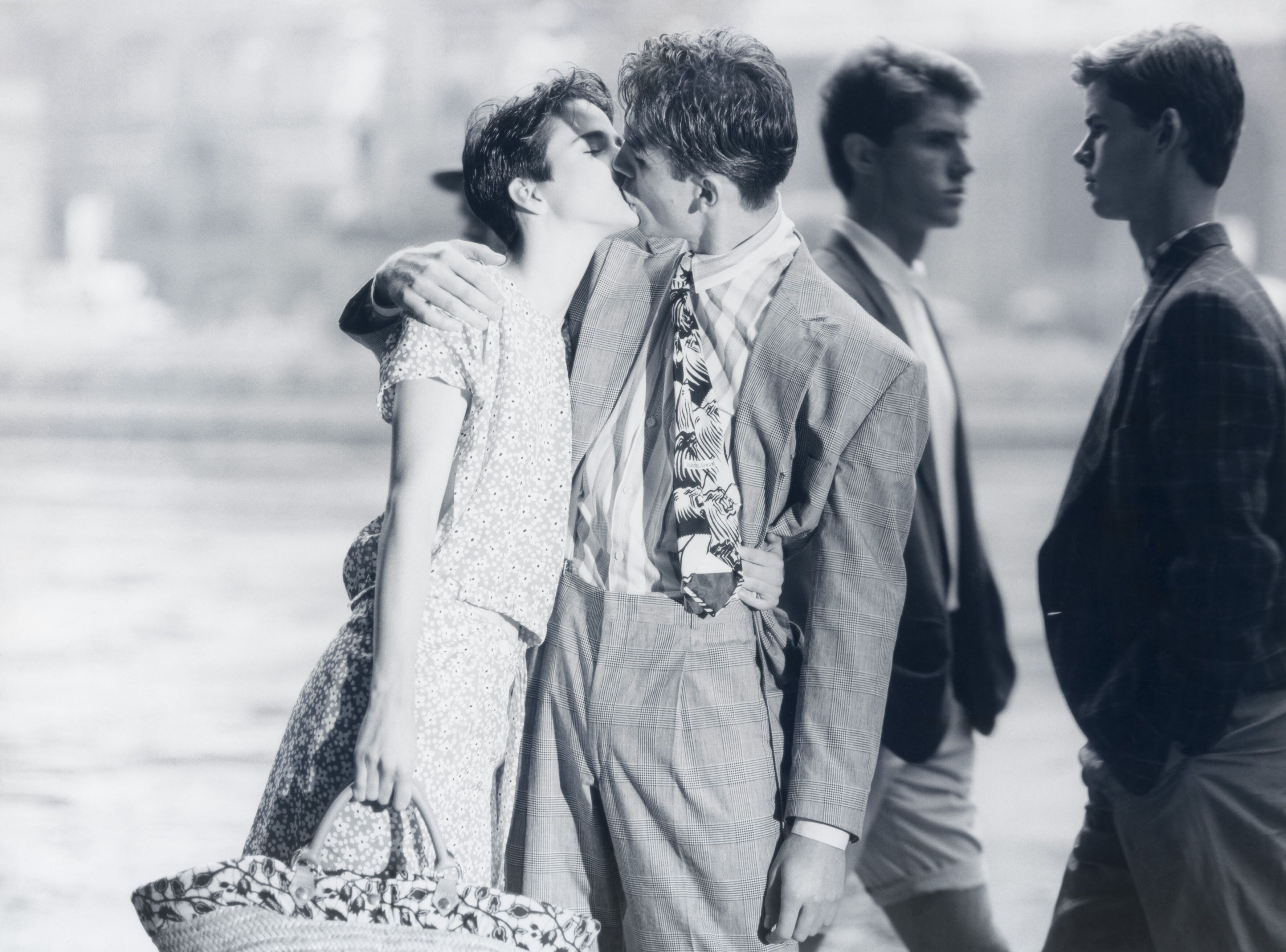 L’uso del bianco e nero, e l’astrazione narrativa che ne deriva, è la scelta vincente: le immagini sono infatti immediate e senza tempo, di pura invenzione ma come catturate in un istante reale. Insieme aspirano a dipingere scene della miglior vita possibile, situazioni nelle quali lo spettatore si può rispecchiare e che rispecchiano l’idea dello stilista che eleganza non è farsi notare, ma farsi ricordare. Il percorso narrativo si snoda su due piani e raccoglie, in rigoroso ordine sparso, circa duecentocinquanta scatti, apparsi sulle riviste o trasformati in affissioni dal forte impatto mediatico. Sono foto familiari e sorprendenti, realizzate con inventiva e intelligenza.