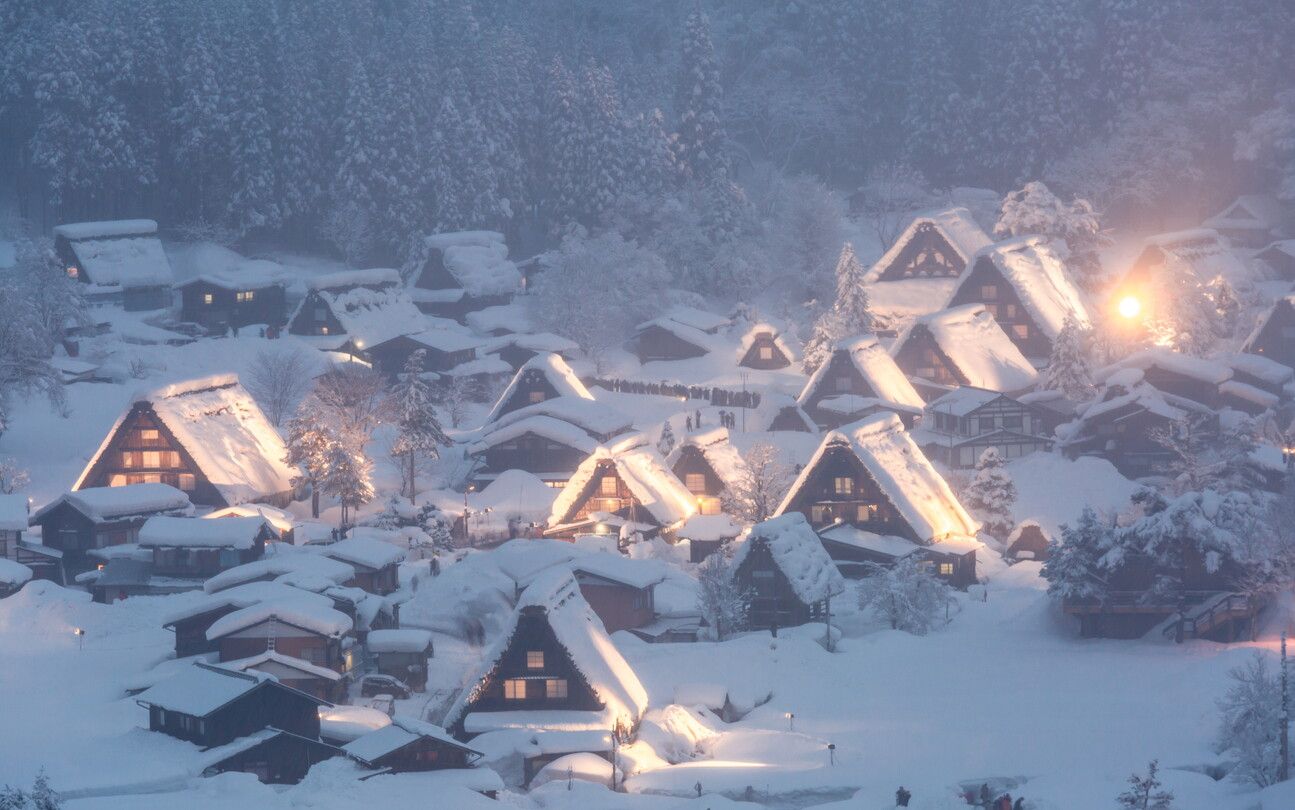 SHIRAKAWA-GO, Giappone - Un curioso e pittoresco villaggio storico, situato sull'isola giapponese di Honshu, Patrimonio dell’Umanità Unesco dal 1995. Il borgo è celebre per le sue antiche case dal caratteristico tetto spiovente di paglia che giunge fin quasi a terra. Le proprietà isolanti della paglia, combinate con la particolare forma del tetto, consentono alle piccole abitazioni di resistere alle abbondanti nevicate invernali.