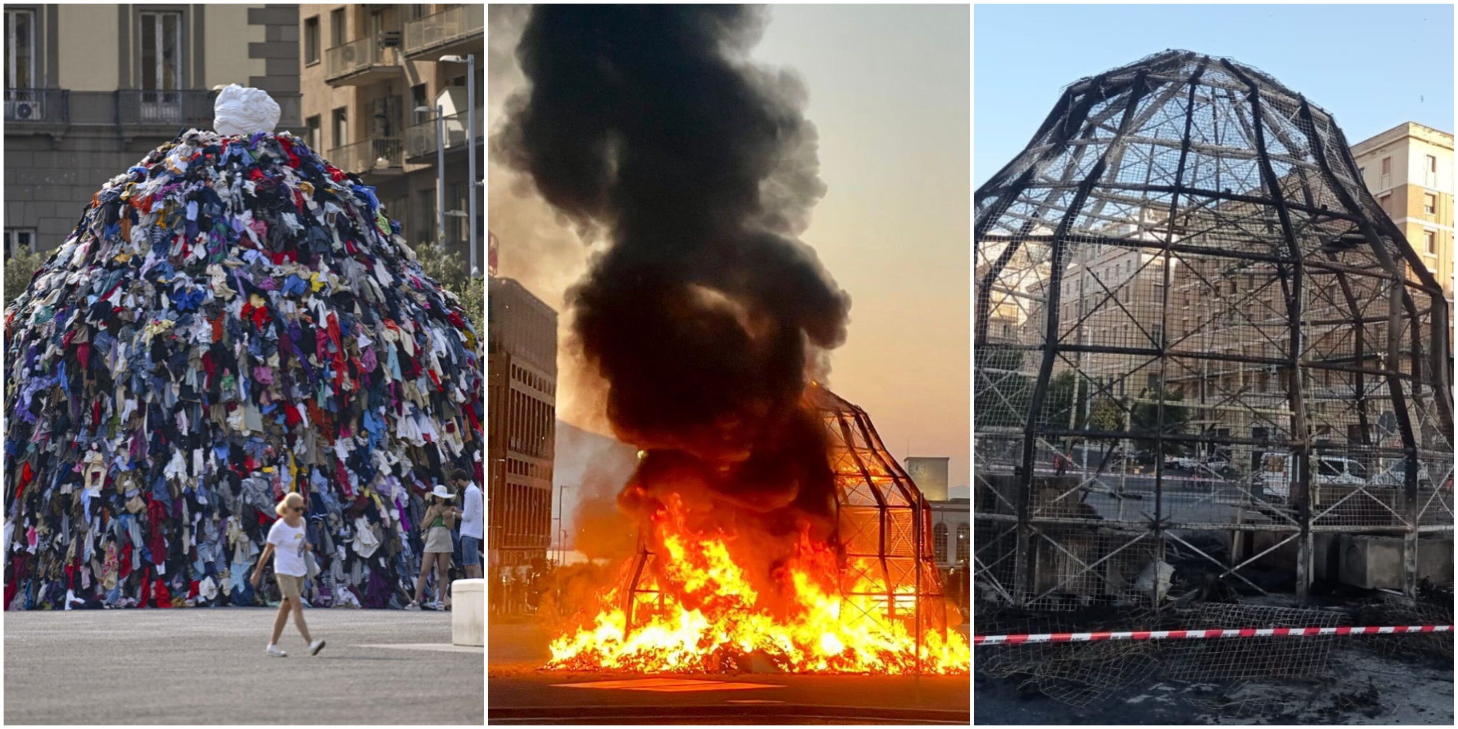 L'opera di Michelangelo Pistoletto, andata distrutta in un incendio il 12 luglio, era stata sistemata appena una quindicina di giorni prima in piazza Municipio