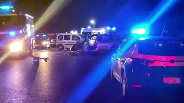 L'incidente è avvenuto in due fasi diverse: prima con un frontale tra due veicoli durante un sorpasso e poi con l'impatto dell'autobus con l'auto rimasta ferma sulla carreggiata, sulla quale viaggiava la famiglia. È rimasto ferito anche il passeggero dell'auto finita nella cunetta.