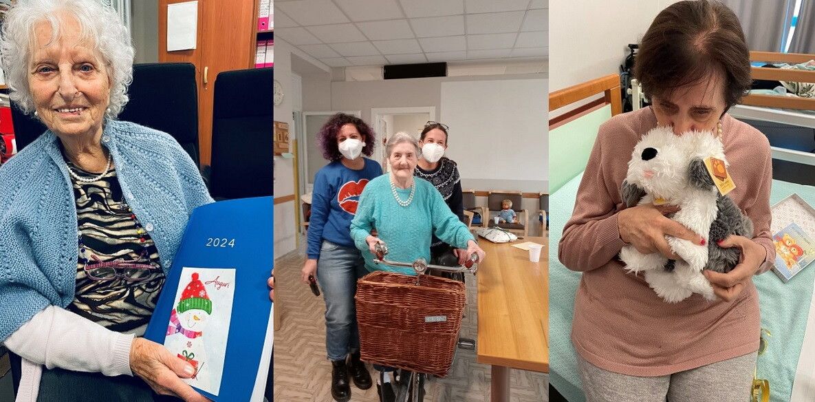 La signora Rossana di 93 anni aveva espresso il suo desiderio: "Vorrei un'agenda per il nuovo anno, con tanto spazio, dove poter annotare i miei pensieri, ciò che mi accade nelle mie giornate, le mie memorie e ricordi... ecco, così mi piace passare il mio tempo qui". E' stata Martina ad accogliere questa richiesta con un immediato: "Ci penso io!". E nonna Rossana, tutta contenta, ha posato con la sua agenda 2024.