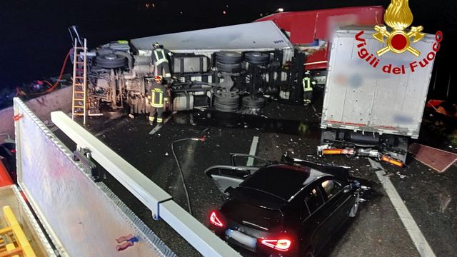 Un Tir si è ribaltato lungo l'Autostrada del Sole poco prima delle 22 di mercoledì all'altezza di Villanova del Sillaro, in provincia di Lodi, provocando incidenti a catena che hanno coinvolto un altro Tir e una vettura. Quattro i feriti, due dei quali più gravi. L'autostrada A1 è stata chiusa al traffico in direzione sud.