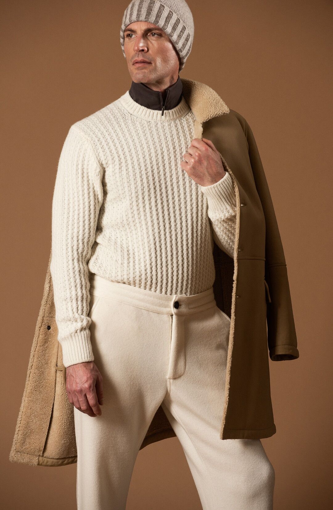 All’interno della collezione autunno inverno 2024-2025, Cruciani ha inoltre incluso un’esclusiva capsule collection ispirata all'eleganza delle località di alta quota come Saint Moritz, con il suo lussuoso Grand Hotel Des Bains Kempinski. I capi pensati per l’après-ski di qualità e tendenza, classificati tra le finezze 3 e 5, sposano la sofisticatezza dei jacquard e dei punti maglia in cashmere e misto cashmere. Questi tessuti si adattano alle variazioni termiche dell'ambiente alpino, regalando un comfort assoluto senza compromettere lo stile e la morbidezza dei capi.