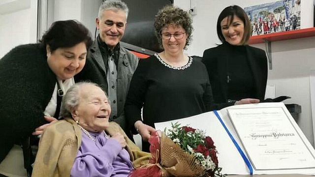 Tempra invidiabile, memoria e classe di ferro, lucida e arzilla con la battuta sempre pronta. Lei è nonna Giusy, al secolo Giuseppina Patriarca, che diventa Commendatore della Repubblica Italiana all'età di 108 anni. "Ho sempre vissuto con il cuore e mai per gli interessi", il commento a caldo alla consegna del diploma dell'alta onorificenza, firmata dal Presidente della Repubblica Sergio Mattarella e dal capo del governo Giorgia Meloni. La cerimonia a Sulmona, dalla consigliera regionale, Marianna Scoccia, che aveva istruito la pratica. La super nonna decana d'Abruzzo, che dallo scorso primo gennaio si è piazzata al vertice della classifica tra i più longevi della regione, è nata a Montorio al Vomano, in provincia di Teramo, il 6 novembre 1915. Da ex maestra, continua a impartire lezioni su TikTok.