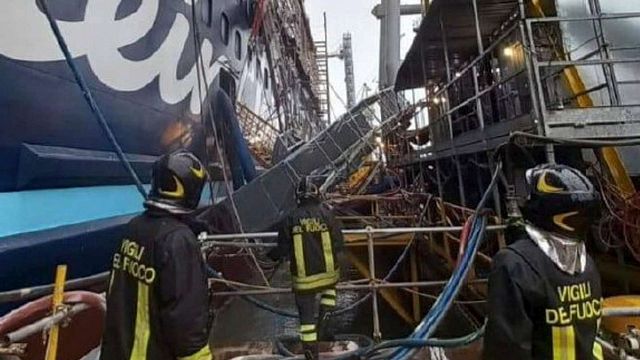 L'operaio infortunato, un 23enne di origini bengalesi, è rimasto schiacciato da pesanti strutture metalliche per la cui rimozione sono dovuti intervenire i vigili del fuoco. Questi utilizzando un autogru sono riusciti a liberare l'uomo che è stato poi preso in carico dai soccorsi sanitari. Secondo una prima ricostruzione, il giovane si trovava sulla passerella dell'ascensore dal ponte 16 che si è sganciata dalla nave. Ha subito un trauma cranico e toracico: la prognosi è riservata. L'area del sinistro, su disposizione della magistratura, è stata posta sotto sequestro. Sono in corso anche operazioni di messa in sicurezza di parti ancora instabili.