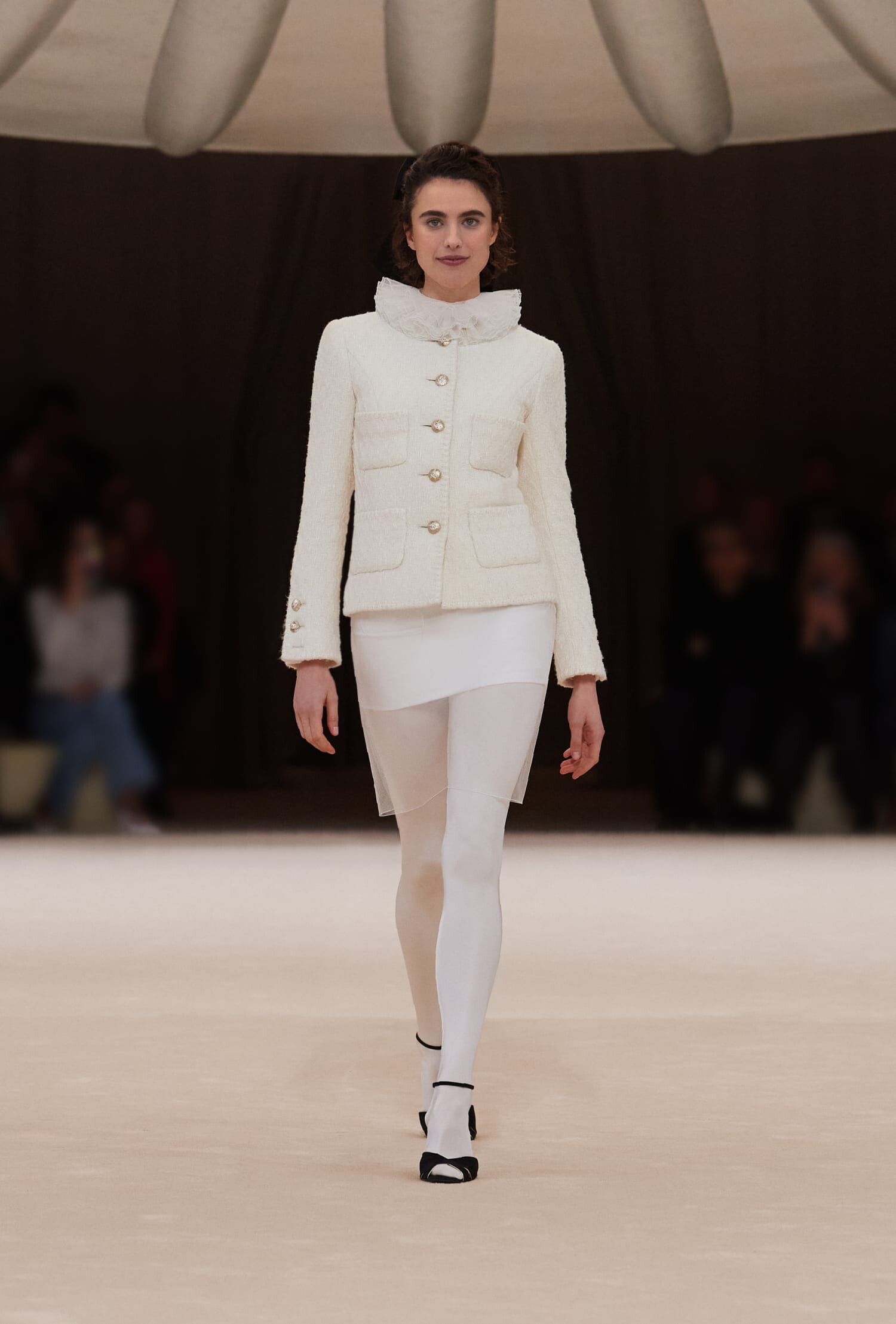 Tutto ha origine e prende forma da un bottone. Quello mancante dalla giacca di Margaret Qualley, modella e attrice statunitense che ha aperto la sfilata e protagonista del mini film che ha anticipato lo show, intitolato appunto "The Button". Ed elemento inteso come uno dei codici riconoscibili di Chanel. Grazie ai bottoni, infatti, le donne potevano liberarsi di tutto ciò che impediva loro di muoversi liberamente. La stessa Gabrielle Chanel li trattava perciò con rispetto, valorizzandoli al massimo rendendoli, di fatto, gioielli.