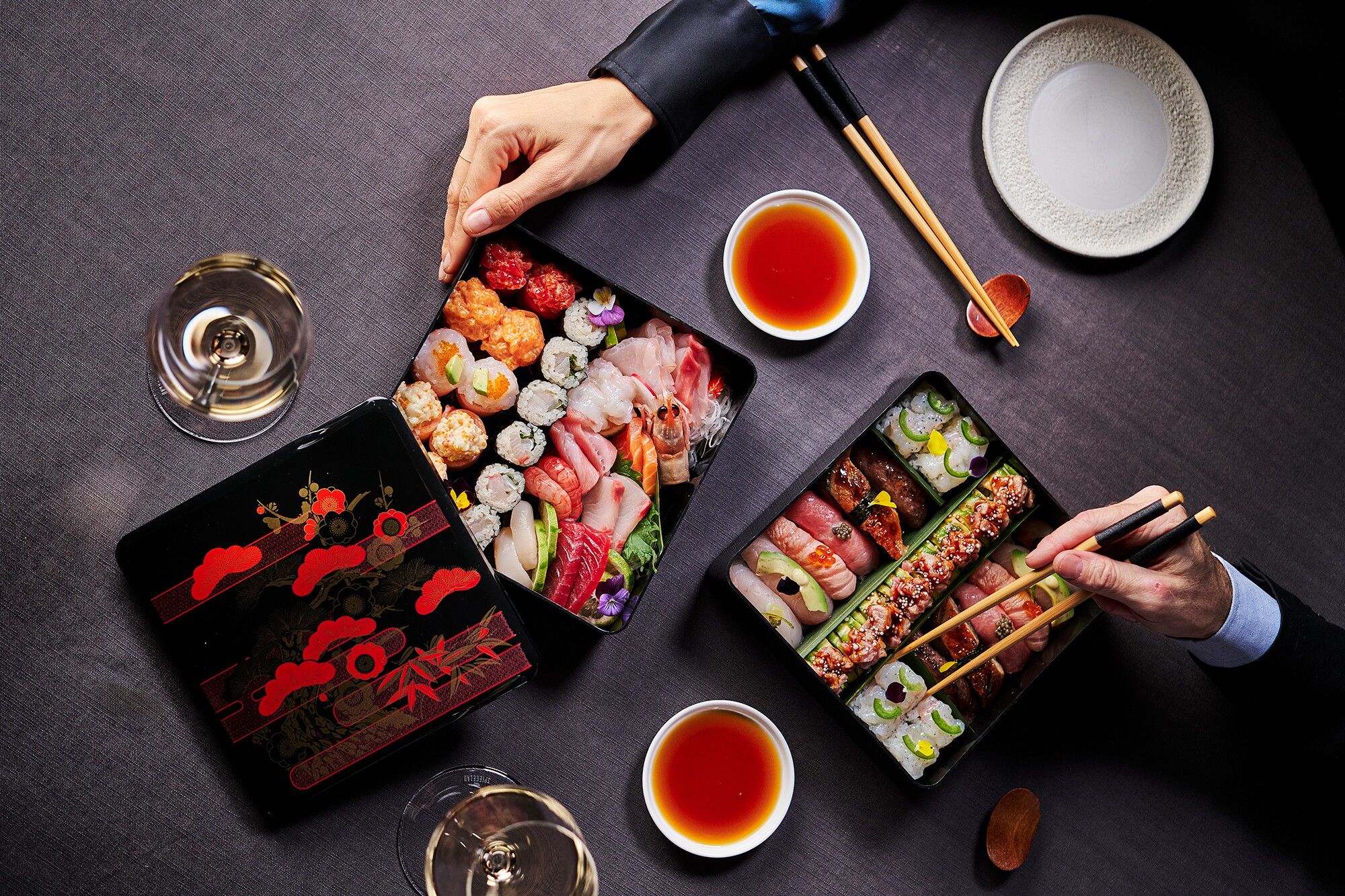 In Giappone, si attende San Valentino (anche detto Barentain dē) per confessare i propri sentimenti alla persona amata. Così, Aji, il delivery milanese di cucina giapponese di proprietà IYO Group, propone la Jubako Box: un romantico ed elegante menu, a base di sushi e sashimi di altissima qualità, racchiuso in una preziosa box a due livelli, laccata e decorata. All’interno sono custodite materie prime altamente selezionate e di estrema qualità come il wagyu, la ricciola del Sud dell’Australia, la ventresca di tonno e il caviale Royal Oscietra.