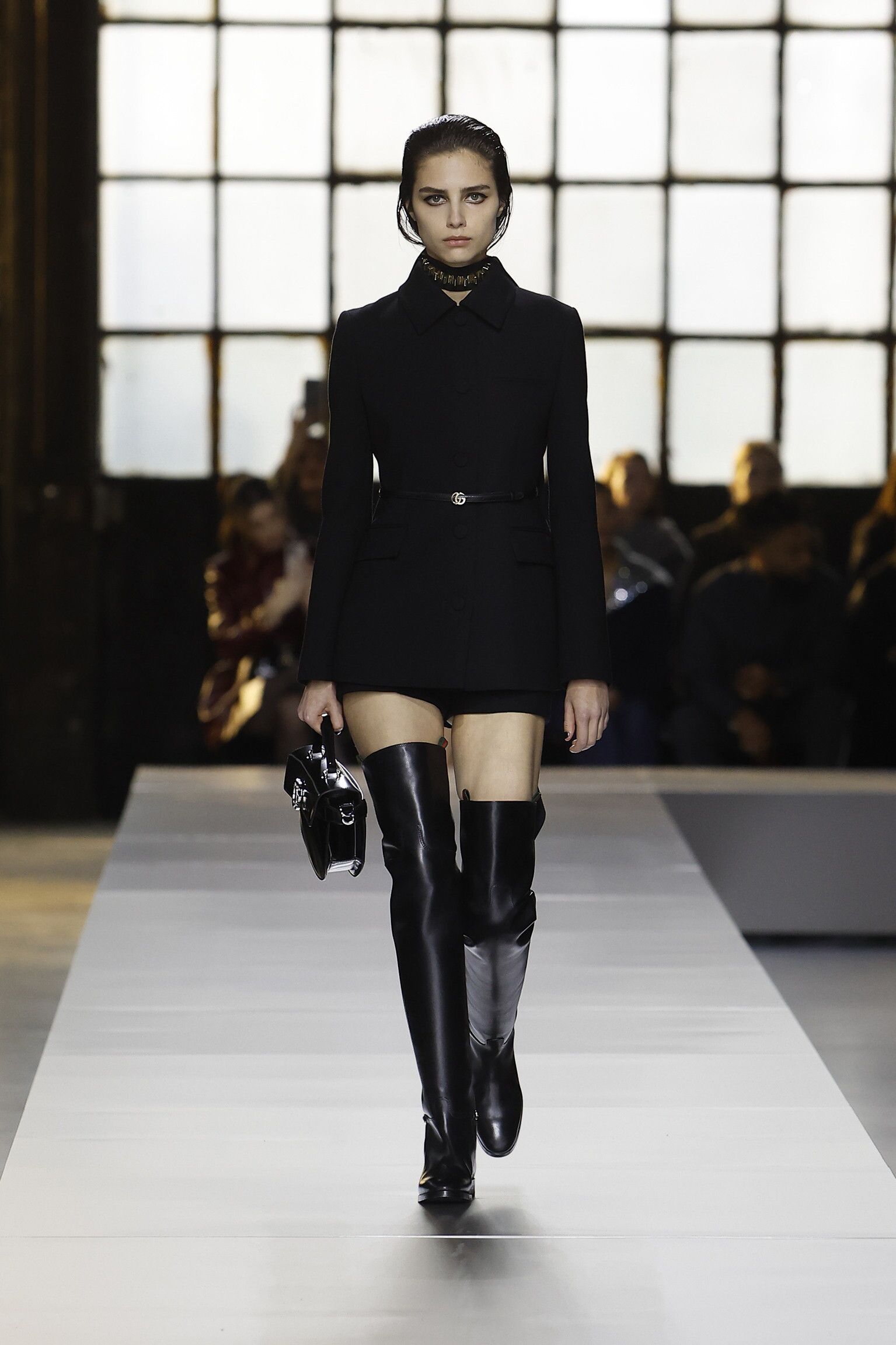 Il protagonista assoluto della collezione donna per i prossimi freddi per Gucci resta comunque il cappotto, in panno e dalla silhouette maschile. Ha un’abbottonatura nascosta e posta sul retro, che lo trasforma in un abbraccio. Lo stesso succede su bomber, caban, chiodi di pelle. “Cogliere lo straordinario dove si dà per scontato che si trovi l’ordinario – spiega Sabato De Sarno –. I miei sogni, così come la mia moda, dialogano sempre con il reale. Perché non sono alla ricerca di un altro mondo da abitare, piuttosto di modi per abitare questo mondo”.