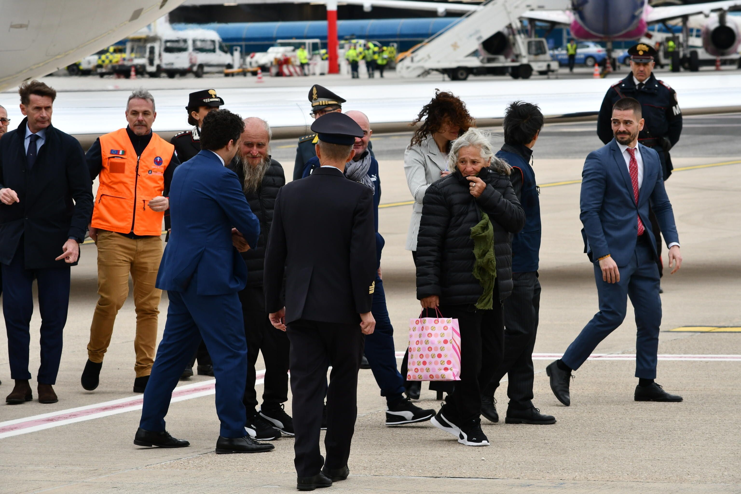 Il ministro degli Esteri, Antonio Tajani, si è recato personalmente a Ciampino ad accogliere i tre italiani: "Sono molto contento, tutto è bene quel che finisce bene. Hanno incontrato qui i familiari, sono in buone condizioni, attestate già dalle prime visite mediche e con lo psicologo, ed ora dovranno essere interrogati". "La signora mi ha invitato ad un pranzo, è un'ottima cuoca", ha aggiunto sorridendo il ministro.