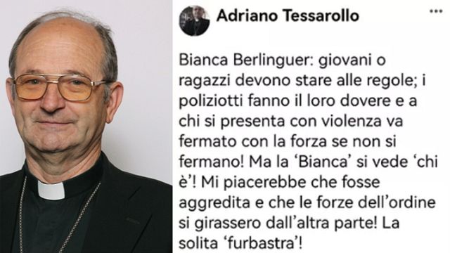 Un post violento contro la giornalista Bianca Berlinguer - "mi piacerebbe fosse aggredita e che le forze dell'ordine si girassero dall'altra parte" - è stato pubblicato, e subito rimosso, da don Adriano Tessarolo, ex vescovo di Chioggia (Venezia). Il prelato non è nuovo a prese di posizione sopra le righe. Questa volta - riferisce il Gazzettino - la vis polemica dell'ex vescovo ha preso di mira la conduttrice di "E' sempre Cartabianca", il programma di Rete 4, per la solidarietà espressa da Berlinguer verso gli studenti di Pisa vittima delle manganellate dei poliziotti.