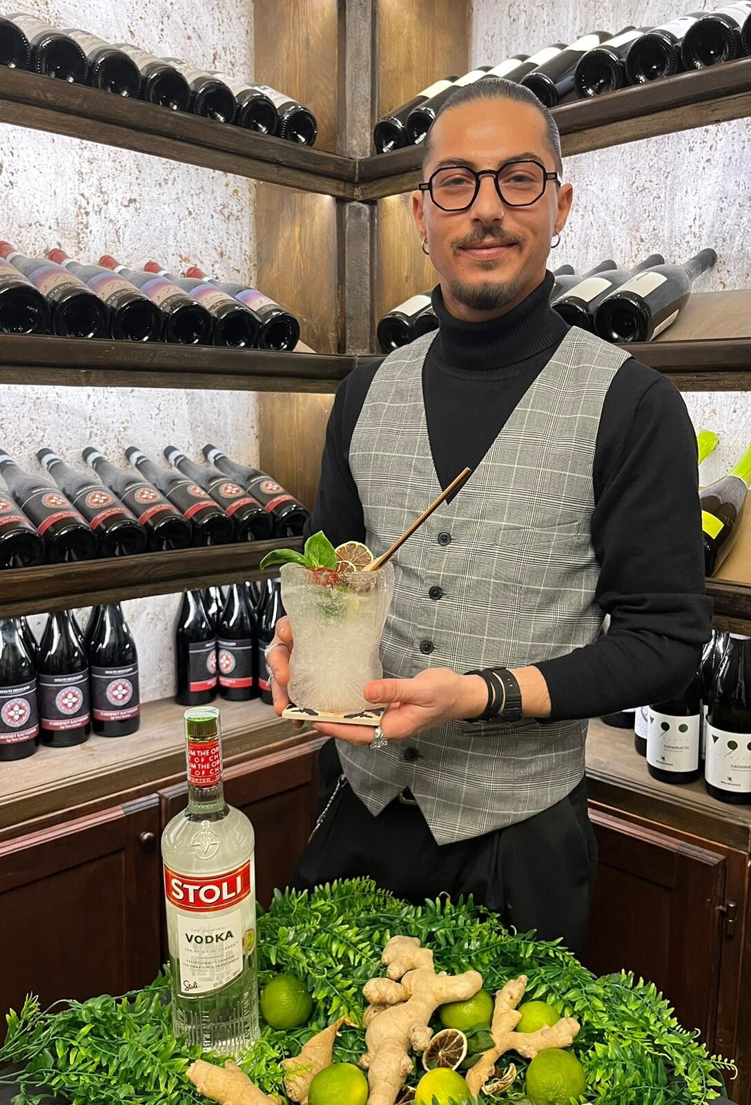 Il bartender Angelo Milazzo del Risto&WineBar palermitano rivisita il Moscow Mule in due versioni: una nel classico bicchiere in rame, mentre l’altra invece viene realizzata in un bicchiere di ghiaccio intagliato realizzato interamente a mano da Angelo proprio per questo cocktail. La variante consiste nell’aggiungere in macerazione nel cordial solo delle foglie di basilico.
