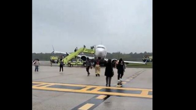Le immagini pubblicate sui social mostrano che il carrello di atterraggio principale sinistro del Boeing è rimasto bloccato sul terreno al fianco della pista e ha lasciato il carrello anteriore in aria. Al momento dell'atterraggio sull'aeroporto cadevano forti piogge e la visibilità era ridotta.