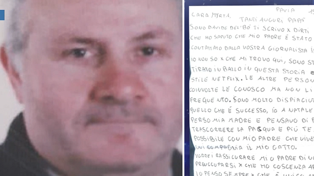 "Pomeriggio Cinque" ha raccolto anche le dichiarazioni del padre di Del Bò: "Lui è tranquillo - ha detto l'uomo -, è il suo carattere. Non ho mai litigato con mio figlio". Davide Del Bò è accusato di incendio e di distruzione di cadavere, un'accusa che non spaventa il legale dell'uomo, Rosario Tripodi: "Noi stiamo tenendo dentro Del Bò che ha una posizione del tutto marginale in tutta questa vicenda. E forse non ha responsabilità penali". "Sono sicuro di poter chiarire tutto il prima possibile - continua Davide Del Bò nella sua missiva -. Voglio tornare ad abbracciare mio padre. Ti voglio bene papà, con affetto. Davide".