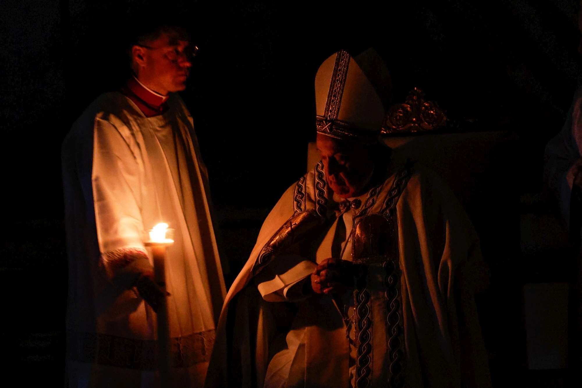 Papa Francesco ha presieduto, nella Basilica di San Pietro, la Veglia pasquale. Il Pontefice, che venerdì sera aveva deciso di non recarsi alla Via crucis al Colosseo, è entrato nella Basilica sulla sedia a rotelle, venendo poi aiutato a mettersi su una sedia. Il rito è iniziato nell'atrio con la benedizione del fuoco e la preparazione del cero pasquale. Alla processione verso l'altare, con il cero pasquale acceso e il canto dell'Exultet, è seguita la Liturgia della Parola e la Liturgia battesimale, nel corso della quale il Papa ha amministrato i sacramenti dell'iniziazione cristiana a 8 adulti (quattro italiani, due coreani, un giapponese e una albanese). "La Pasqua fa rotolare via i macigni della morte", ha ricordato il Pontefice nella sua omelia.