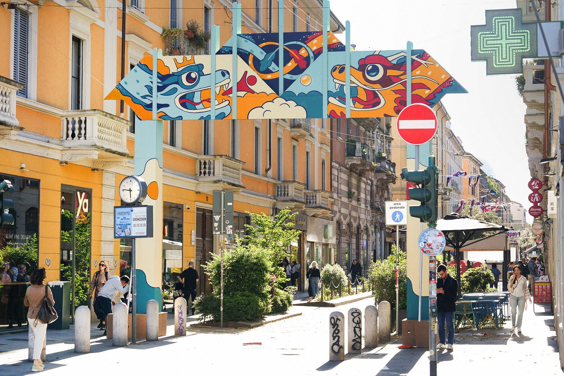 Zona Sarpi si sviluppa in collaborazione con la comunità ibrida e attiva del quartiere: designer, aziende e istituzioni racconteranno la qualità del design e del lifestyle cinese in connessione con le progettualità della comunità del design milanese e internazionale. Tra gli interventi più suggestivi, prodotti e allestiti da DONTSTOP Architettura, ci sarà il Portale di China Town: innesto temporaneo, realizzato con il creativo Tommaso Lanciani e lo street artist Pao, che riprende stilemi milanesi e cinesi e arricchito con disegni realizzati dai bambini del quartiere. La zona ha tre poli principali nel quartiere: