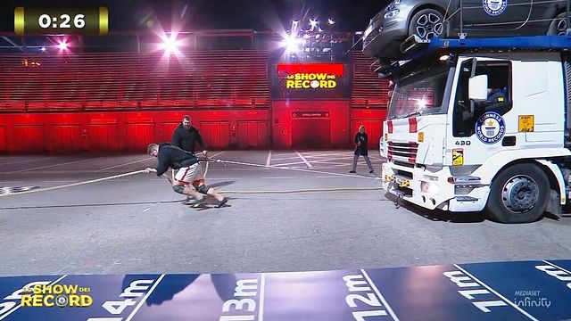 Il record da battere per i due forzutissimi "Strongman" è: trainare una bisarca con 5 veicoli dal peso totale di 24.3 tonnellate per 20 metri entro 50 secondi. I due uomini hanno dato prova di uno sforzo oltre il limite umano, aiutandosi con una corda mentre con un'imbracatura legata al tir per portarlo in avanti. I due pesi massimi sono riusciti entrambi a portare a termine il percorso, ma solo uno ha conquistato il record. Adam è riuscito a portare a termine il percorso in poco meno di 37 secondi, mentre Mateusz ci è riuscito in poco più di 29 secondi.