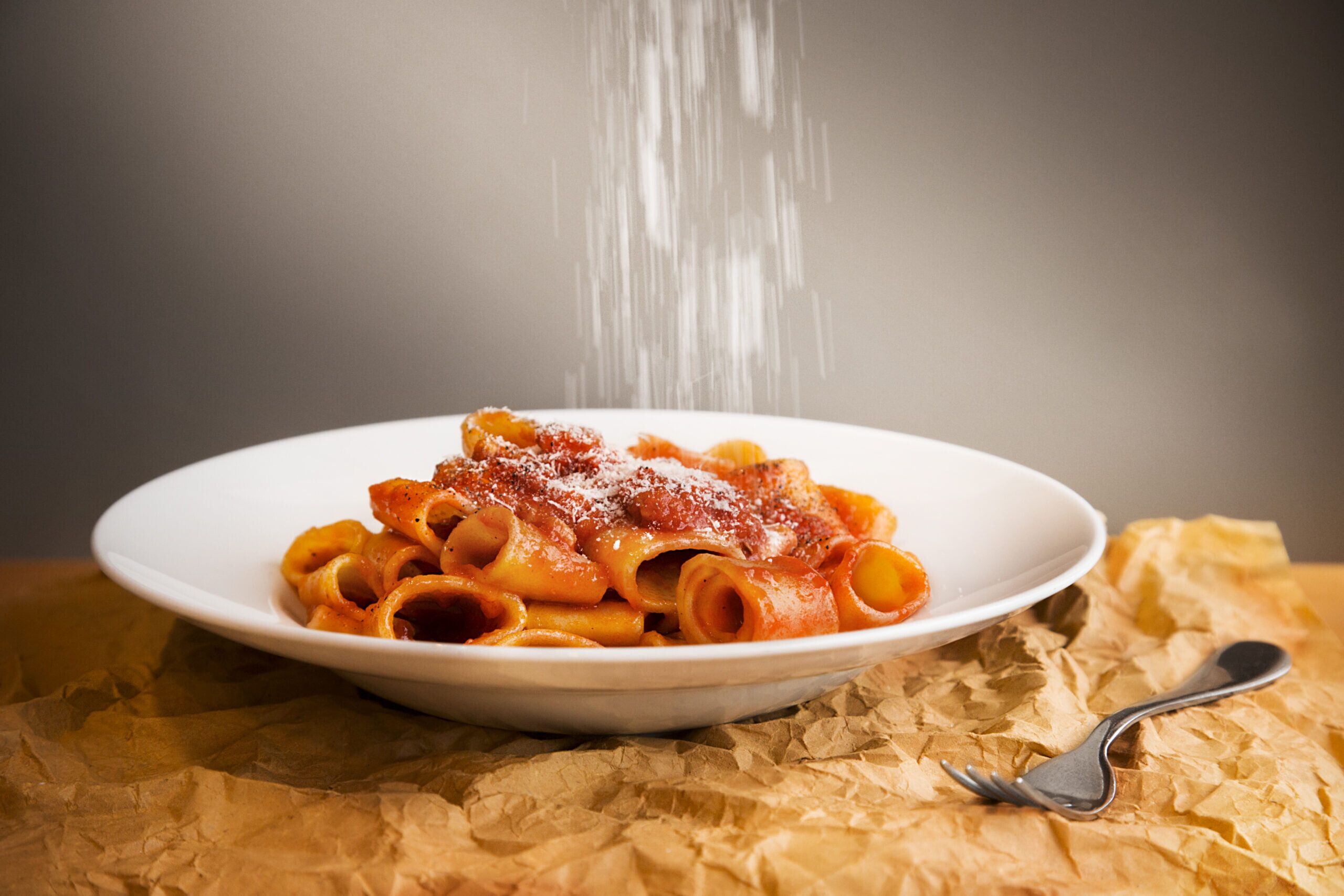 La storica bottega dei sapori Ercoli 1928, ora anche ristorante, cocktail e vermouth bar, porta le ricette e gli ingredienti della tradizione: Maccheroncini freschi all'amatriciana e Mezze maniche rigate fresche alla carbonara, entrambe arricchite da una spolverata di pepe di Sichuan.