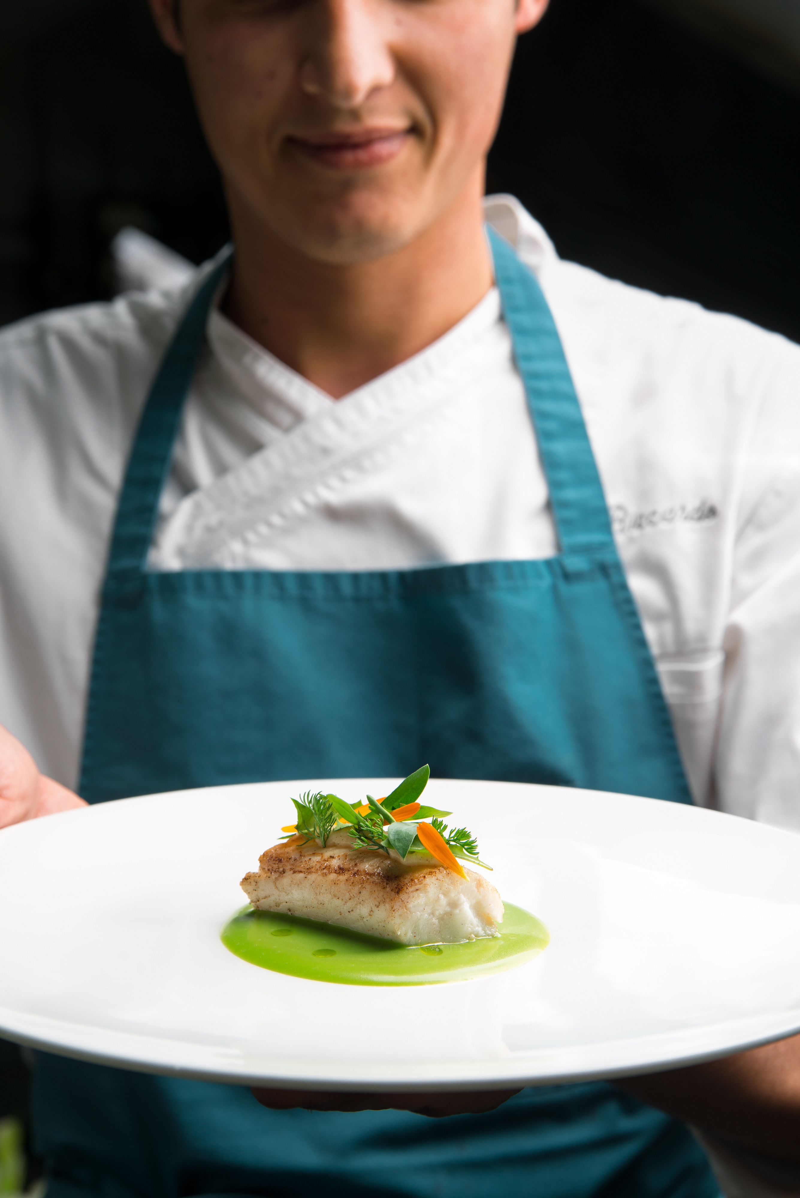 Nel primo troviamo piatti complessi nella loro semplicità, come il “Seppia alla brace e levistico” oppure i “Garusoli-erbe e brodo di mare, patate e ostrica”. Tra le portate più sorprendenti c’è la reinterpretazione di uno dei classici alimentari della città, ovvero la moeca, che abbandona la solita frittura per divenire interno per dei tortelli serviti con polvere di lattuga di mare, riso e limone.