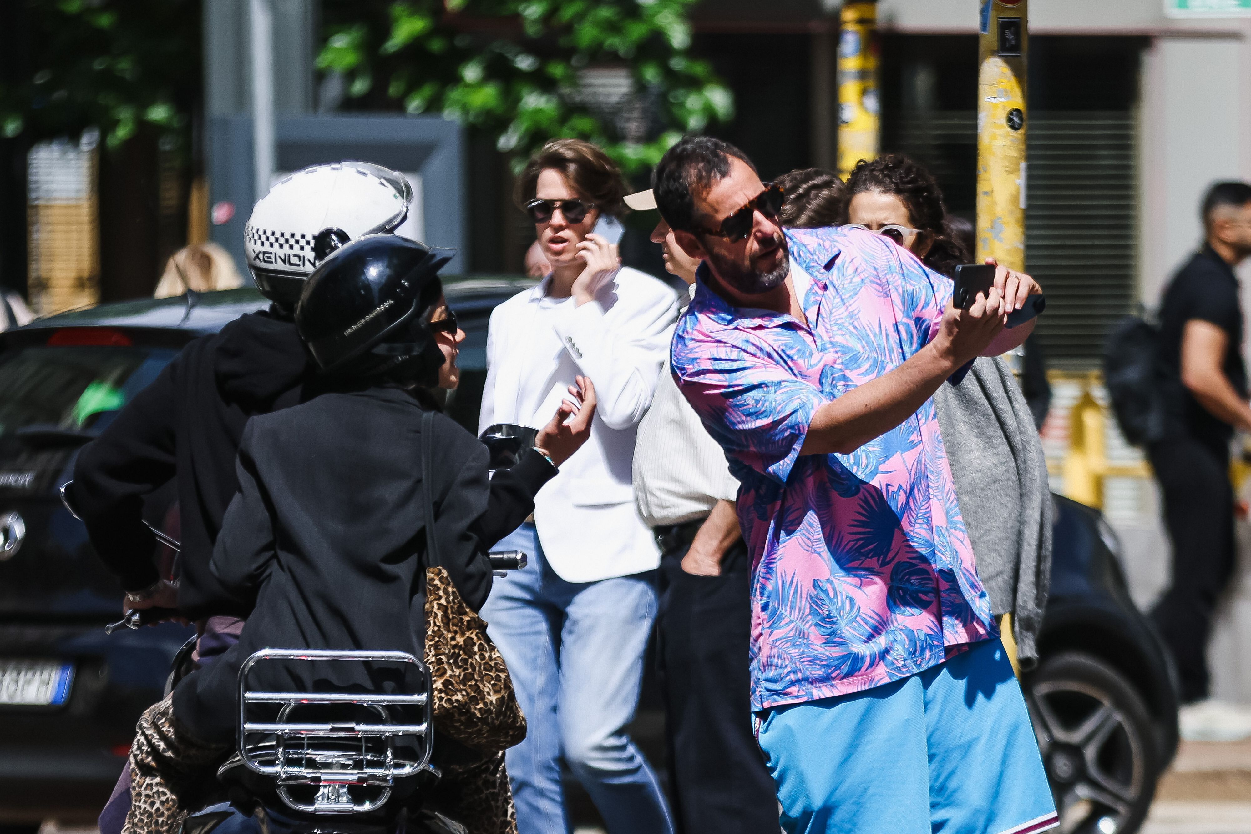 Adam Sandler (recentemente eletto da Forbes la star più pagata di Hollywood) è stato avvistato dai paparazzi e dai fan insieme alla moglie Jackie e alla figlia 18enne Sadie Madison (che ha spento le candeline il 6 maggio, lo stesso giorno di George Clooney) a spasso per il quadrilatero della moda, in zona Montenapoleone. L'attore ha concesso selfie e sorrisi ai passanti, durante una pausa dal set insieme. Si tratta di un ritorno a Milano per Adam Sandler, che nel 2018 aveva girato in città alcune scene di "Murder Mistery" in compagnia della collega Jennifer Aniston.