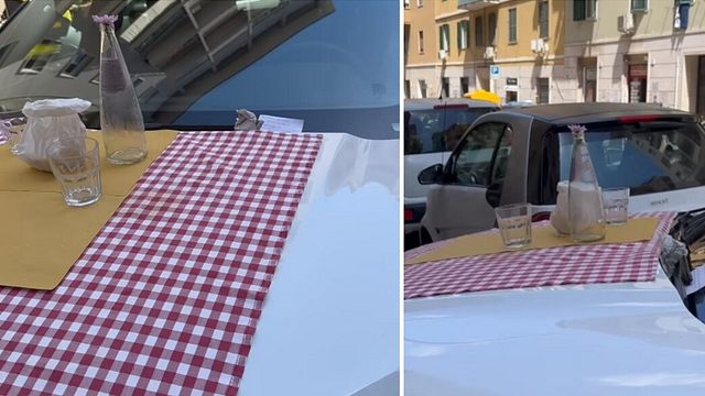 Apparecchiato per due, con tanto di fiorellino al centro. E un biglietto d'accompagnamento, con parole, però, non troppo di miele. Questo si è ritrovato un automobilista di Roma sul cofano del suo Suv, lasciato parcheggiato sul marciapiede davanti a un ristorante in zona Tuscolana, ad impedire il passaggio dei pedoni e la normale attività del locale. L'"iniziativa" è stata diffusa con un video su Instagram da Loreto Valente, attivista romano della mobilità sostenibile con il gruppo Bringyourbike e videomaker. Pare che il proprietario dell'auto in questione sia noto nel quartiere per la sosta selvaggia. Ma stavolta la lezione di civiltà così "servita"... sarà davvero servita?