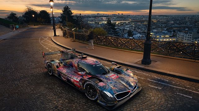 La fusione di immagine e veicolo è stata realizzata con l'aiuto della mappatura 3D, con cui il motivo è stato trasferito sui contorni del veicolo. La complessa pellicola consente alla BMW M Hybrid V8 interamente progettata di competere alla 24 Ore di Le Mans, guidata dai piloti del BMW
