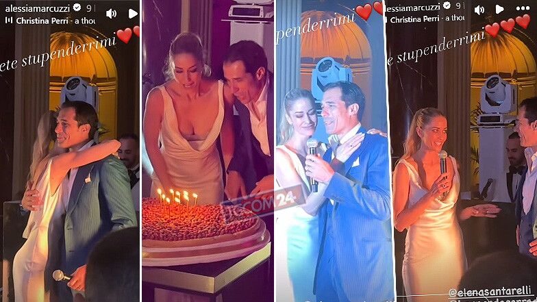 “Sei il mio faro - ha detto Elena Santarelli rivolgendosi a Bernardo Corradi prima di soffiare sulle candeline di una deliziosa torta a forma di cuore piena di fragole rosse - Mi hai trovato in un angolo con i pugni chiusi, grazie per avermi accolto nella tua vita e per sorreggermi sempre”. L’ex calciatore ha ringraziato gli ospiti: “Questa è la festa che celebra l'amore tra due persone che condividono un progetto di vita, ma anche l'amore verso i nostri familiari che ci hanno aiutato e poi l'amore verso gli amici. E' un modo per dirvi grazie, quando ci voltiamo sappiamo che non siamo soli”.