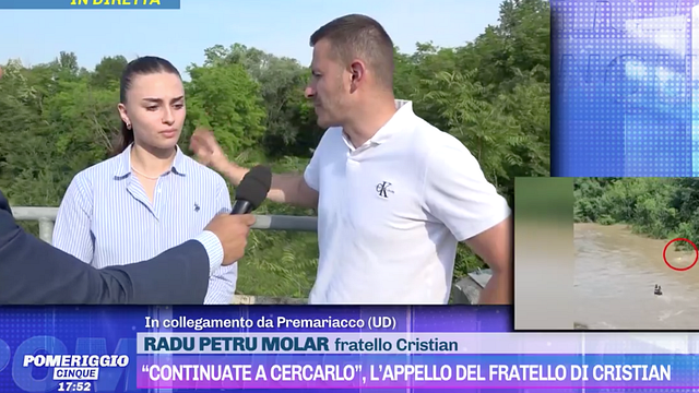Continuano le ricerche di Cristian Casiar Molnar, il 25enne di nazionalità romena che venerdì 31 maggio è stato travolto dalla piena del fiume Natisone nei pressi del ponte Romano, a Premariacco, in provincia di Udine. Petru Radu Molnar continua a sperare di trovare vivo il fratello e a "Pomeriggio Cinque" lancia un appello: "Chiedo che non si fermino le ricerche, sento che mio fratello è vivo e spero nel suo ritrovamento".