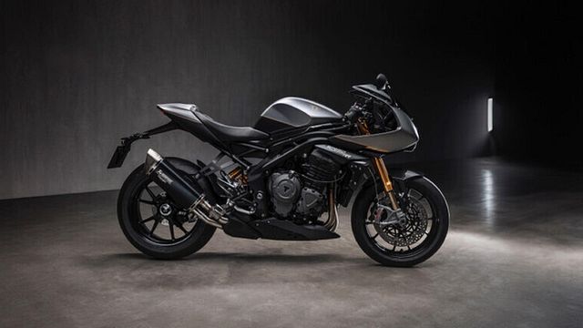 Limitata a soli 270 unità in tutto il mondo, la nuova Triumph Speed Triple 1200 RR Breitling è caratterizzata da una colorazione distintiva, con dettagli in oro dipinti a mano, sella in pelle marrone con cuciture francesi, terminale Akrapovič e diverse componenti in fibra di carbonio ultraleggera. Lo stile Breitling si ritrova tutto nei dettagli, per esempio nella schermata di avviamento personalizzata, nel logo inciso al laser sul badge installato al centro dell’asse posteriore e nel distintivo logo Breitling sul serbatoio, in oro.