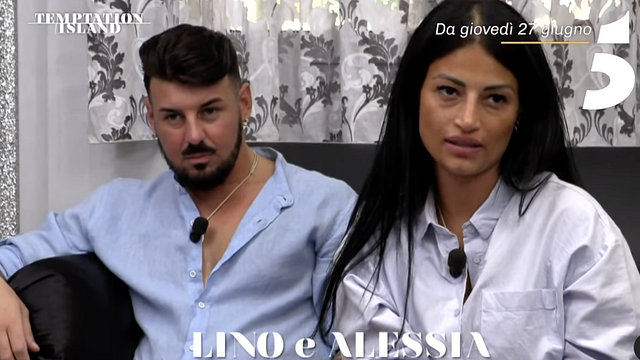 "Sono Alessia, vengo da Napoli e ho 30 anni. Sono fidanzata con Lino da 4 anni. Ho scritto a Temptation Island perché non ho fiducia in lui, penso che mi tradisca e sono stanca di rincorrere un ragazzo immaturo", esordisce Alessia. Lino confessa subito di volersi prendere più tempo per se stesso: "Per lei è diventata una guerra, però per me è diventata pesante perché io vorrei un po' di libertà". Ma Alessia non la prende bene: "Non so se non capisce, se è scemo, non lo so. La fiducia si guadagna o la dai a chiunque?". E lui replica: "Una volta ho sbagliato, non è che mo questa cosa me la devi rinfacciare a vita".