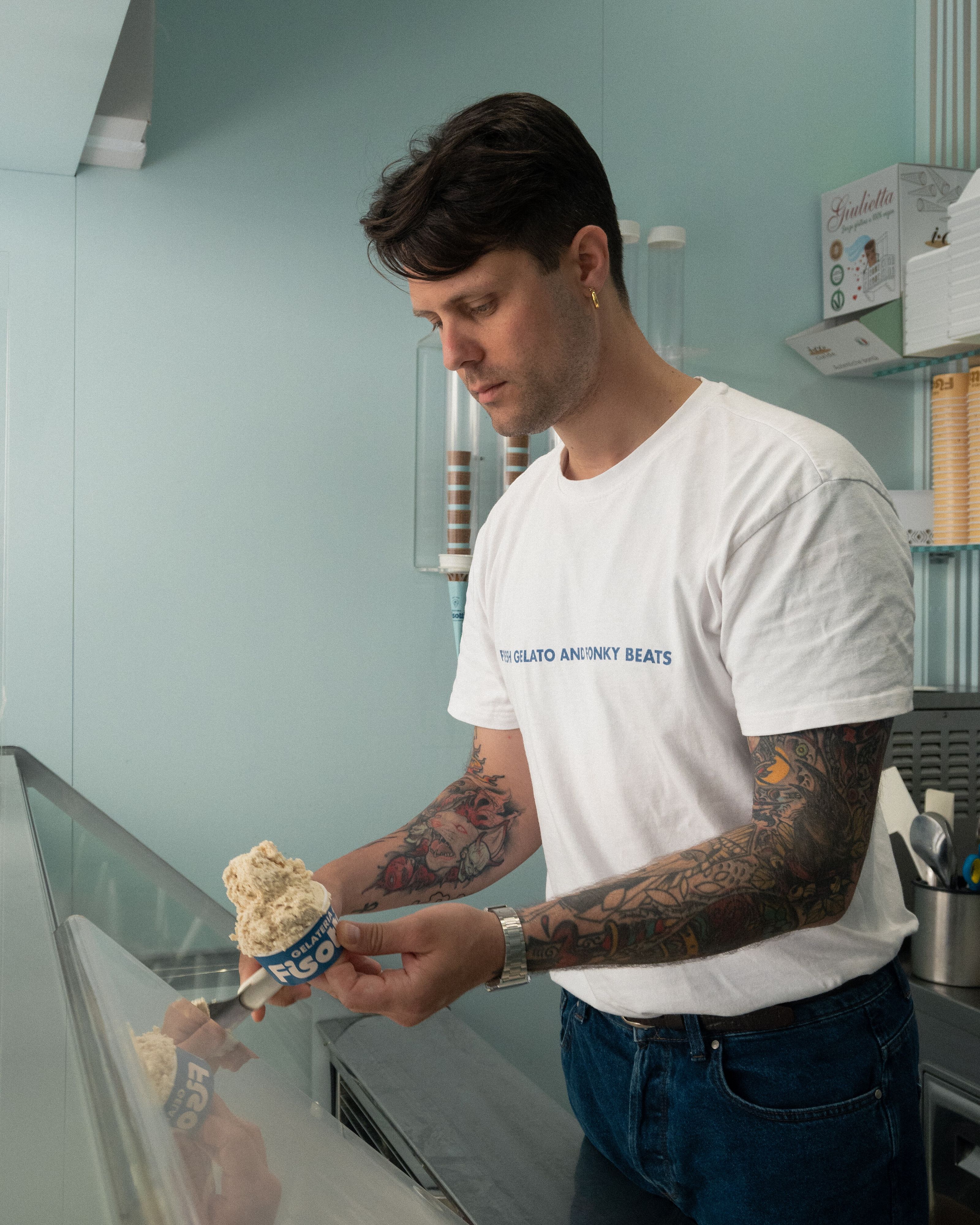 Dopo anni di militanza in vari ambienti musicali come cantante, il dj e produttore Francesco Fisotti ha deciso di unire le sue due passioni gelato/beats, e nel 2018 ha fondato l’etichetta indipendente Quattro Bambole Music, una realtà underground nella quale gravitano diversi dj, beatmaker, rapper, musicisti, grafici, fotografi, con già all’attivo oltre quindici pubblicazioni. Il progetto “Gelato Italiano” nasce nel 2023, con l’intento di realizzare una colonna sonora che diventasse protagonista degli spazi della Gelateria.
