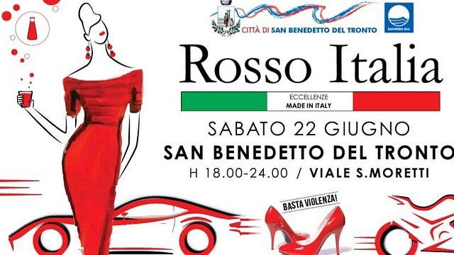 Si svolge sabato 22 giugno la seconda edizione di “Rosso Italia”, la manifestazione dominata dal colore della passione, organizzata da Associazione culturale Apat con la direzione artistica di Claudio Marastoni e Patrocinata dal Comune di San Benedetto del Tronto, per celebrare le numerose eccellenze del Made in Italy. Tutto è all’insegna del colore rosso, a cominciare dalle Rosse per eccellenza, ovvero le Ferrari, accompagnate dai modelli in rosso Valentino e dall’enogastronomia, rappresentata dal rosso Campari e dal Rosso Piceno.