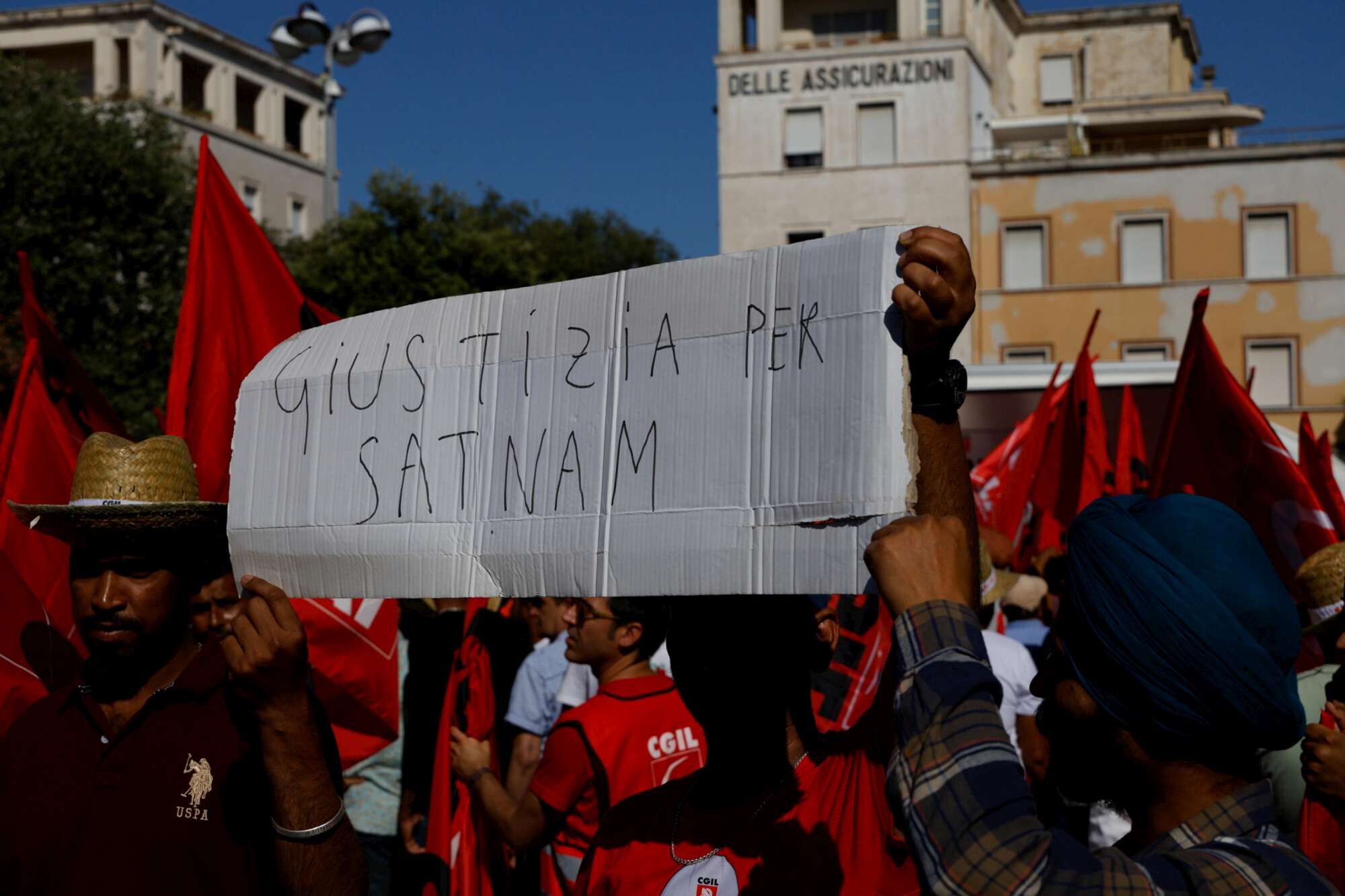 "Quello che ha fatto il proprietario dell'azienda agricola di Satnam non è giusto. In Italia gli ospedali sono sempre aperti, per tutti. Se fosse stato portato subito lì, oggi sarebbe qui con noi". È la testimonianza di Singh Amarjit, lavoratore in un'azienda di bombole di gas in provincia di Latina. "E invece oggi la sua mamma e i suoi fratelli, a cui mandava i soldi da qui, stanno piangendo in India. Eppure, prima di lui era successo già a tanti altri. Questa volta, pero', visto come è stato trattato dal suo datore di lavoro, il governo italiano ha alzato la voce". Singh Amarjit è uno dei tanti di nazionalità indiana del territorio pontino, ma anche del resto del Paese, che oggi hanno partecipato alla manifestazione organizzata dalla Cgil in piazza della Libertà per Satnam Singh, conosciuto come Navi, il bracciante indiano di 31 anni morto dopo esser stato abbandonato davanti casa dal proprietario dell'azienda agricola nella quale poco prima aveva perso il braccio destro in un incidente sul lavoro, amputato da un macchinario avvolgiplastica e lasciato in una cassetta per gli ortaggi insieme al trentunenne davanti alla sua abitazione, invece di allarmare i soccorsi. "Satnam era uno dei tanti clandestini arrivati in Italia a piedi o in barca senza documenti", ha proseguito. "Molti di loro sono in nero, ma se messi in regola lavorano meglio, cosi' come dovrebbe essere. È una situazione che si protrae da anni e anni. Chi ha i documenti prende 6 euro, chi è senza 3 o 4 al massimo. Dico sempre loro che se vengono trattati male devono andare subito dalla polizia o dai carabinieri per denunciare tutto. Lavorano 12 o 13 ore al giorno sotto al sole: vivono indietro di vent'anni. Meritano che i loro diritti vengano rispettati". "Lavoro dalle 5 di mattina fino alla sera, 12 o 13 ore al giorno", gli fa eco Kumar, che in Italia si fa chiamare Dario. "Guadagno 4 euro e 30, 3,60 o 5,50 all'ora: è davvero pochissimo. Non basta per pagare la casa, le tasse e inviare gli altri soldi risparmiati ai nostri familiari che vivono in India". "Sono tre anni che sono qui senza documenti. A Latina siamo 7mila regolari e 12mila regolari, più altri lavoratori in nero che non vengono contati", ha osservato invece Jagdeep Singh, che non parla italiano, ma le sue parole vengono tradotte da Kumar. "Vengo pagato 4 euro all'ora, anche se non sempre mi vengono dati. Non è giusto, se lavori devi essere pagato".