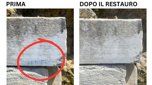 "Grazie ai lavoratori del Parco archeologico di @pompeii_sites per aver ripulito rapidamente l'ennesima scritta con cui era stato vandalizzato un blocco di marmo di un monumento funerario". Così su X il ministro della Cultura Gennaro Sangiuliano a proposito del momunento funerario rinvenuto imbrattato all'interno degli scavi archeologici campani.