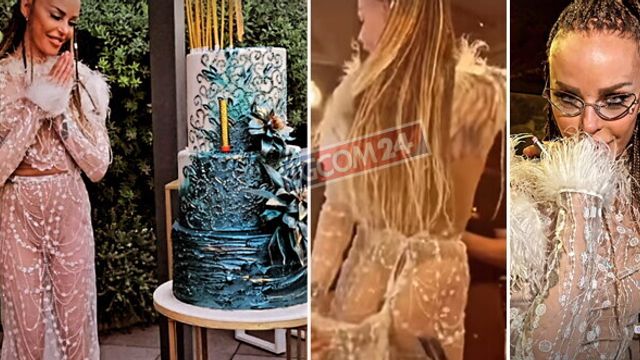 Nina Moric lascia tutti senza fiato alla sua festa di compleanno. Indossa un completo bianco totalmente trasparente, che non lascerebbe nulla all'immaginazione se non fosse per la biancheria coloro carne. Piume e cristalli arricchiscono al profonda scollatura sulla schiena e i polsi, e una cascata di treccine completano l'outfit della regina del party. Nina ha scelto come location una terrazza di Roma, dove è stato servito un aperitivo a base di frutti di mare e fritti innaffiati da champagne e cocktail. E poi una torta a tre piani e gadget per tutti gli ospiti.