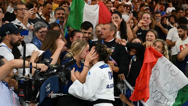 Albano sul tatami dell'oro canta "Felicità" - Dopo l'oro della judoka azzurra, Al Bano, che si trova a Parigi in qualità di ambasciatore della Federazione internazionale di judo e che era presente alla gara, ha improvvisato uno show. Il cantante, amico del presidente della IJF (International Judo Federation), e che ha seguito la finale al fianco del premier Giorgia Meloni, è andato sul tatami e ha intonato "Felicità": tutto il palazzetto ha cantano il brano celebre nel mondo.