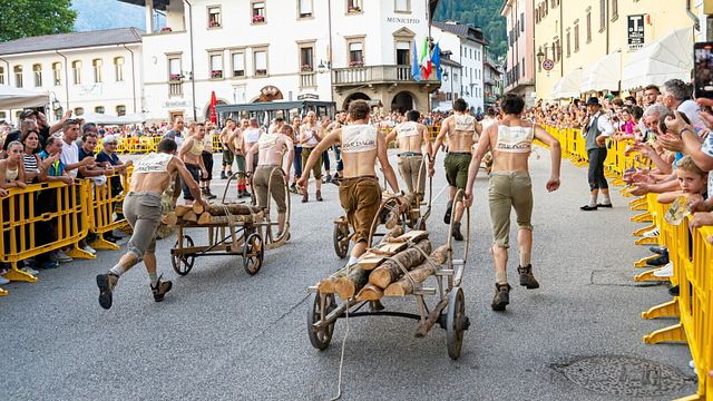 LE SFIDE DEL PALIO - La curiosità di tutti è comunque per le sfide del Palio, in programma domenica a partire dalle 17, dopo la Sfilata e la presentazione delle contrade: alle donne viene richiesto di correre trascinando una cjarogiule carica di 15 kg di fieno, mentre gli uomini sono chiamati a tagliare porzioni circolari di tronco d'abete con il segaccio (seon), assemblare e assicurare un carico di legna di 1 quintale sulla cjarogiule, da addestrare poi per le vie del paese nel minor tempo possibile per assicurarsi il miglior posizione di partenza nel Palio vero e proprio. C'è anche un mini-palio speciale per i bambini. 15 le contrade sfidanti: PAR DAUR (vincitrice dell'ultima edizione), Vile, Place, Cente, Somavile, Liussul e Tausie, Granducato di Casali Sega, Naunine, Cleules, Somprat, Sudri, Gombe da Poc, Curcuvint, Riu e Incjaroi.