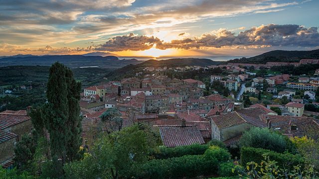 Campiglia Marittima, che fa parte dei Borghi più Belli d’Italia, è arroccata sulla sommità di due colline e offre una vista meravigliosa sul Mar Tirreno e sulle isole dell'Arcipelago Toscano. Il borgo è un vero e proprio gioiello, ricco di storia, cultura e tradizioni: le mura medievali ancora intatte, con le loro originarie torri e porte di accesso, le case-torri in stile pisano e le residenze ottocentesche. Il cuore del borgo è Piazza della Repubblica, dove si affacciano il Palazzo Pretorio e la Chiesa di San Lorenzo.